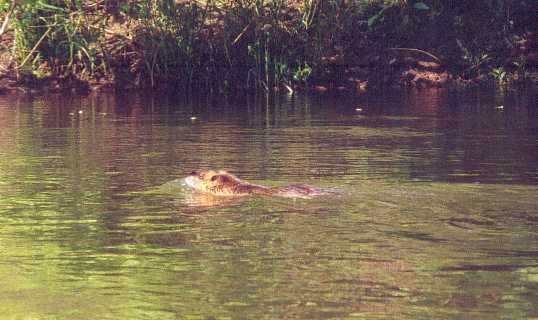 wiederum überholt, hatten aber dann die Saale - bis zum Bad Kösener Wehr - für uns alleine. Auf dem Weg dorthin kreuzte ein Nutria interessiert unseren Weg.